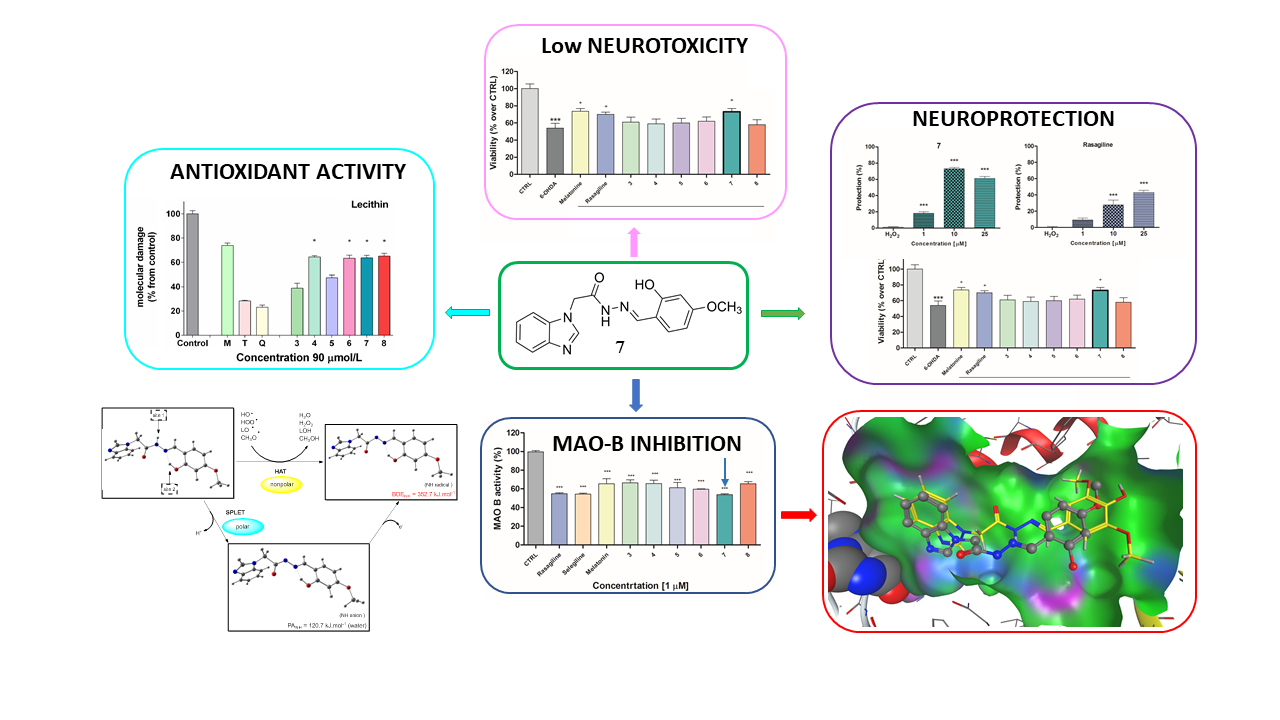 Evaluation of the combined activity of benzimidazole arylhydrazones as new anti-Parkinsonian agents: monoamine oxidase-B inhibition, neuroprotection and oxidative stress modulation