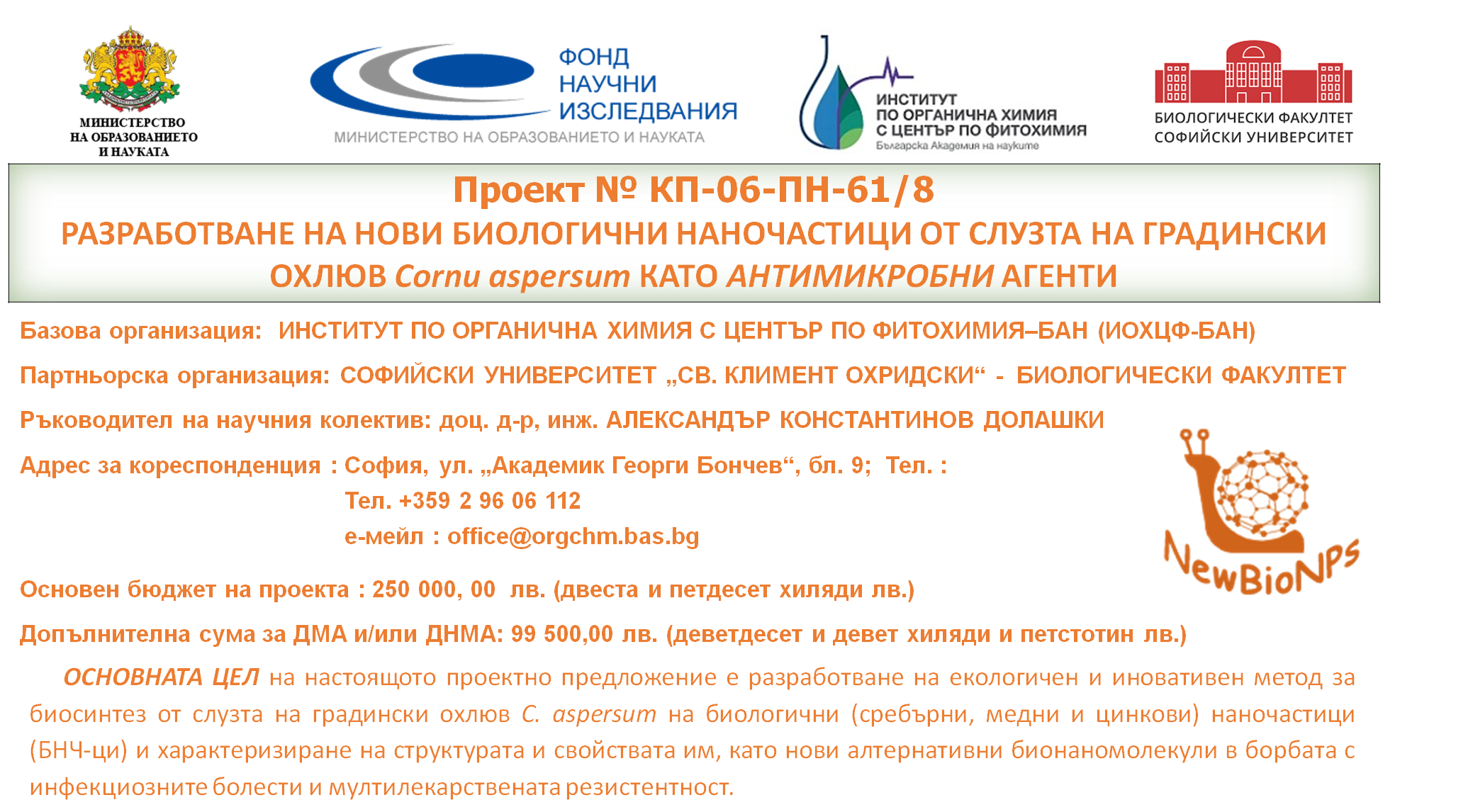 РАЗРАБОТВАНЕ НА НОВИ БИОЛОГИЧНИ НАНОЧАСТИЦИ ОТ СЛУЗТА НА ГРАДИНСКИ ОХЛЮВ Cornu aspersum КАТО АНТИМИКРОБНИ АГЕНТИ